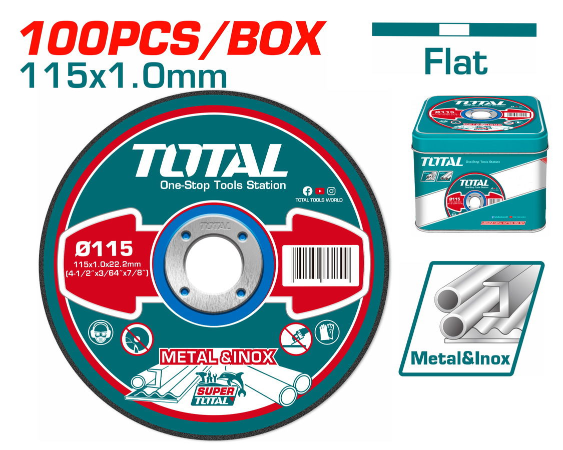 Set 100 Discos Abrasivos de Corte 115x1.0mm TOTAL TAC210115100