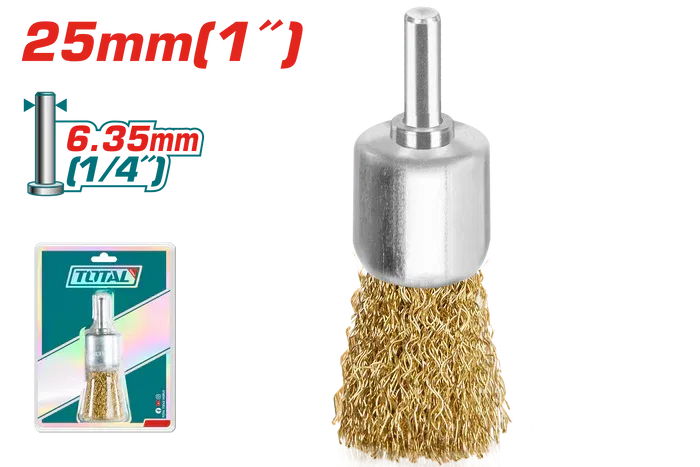 Cepillo Copa de Bronce Rizado 25mm para Taladro TOTAL TAC37011