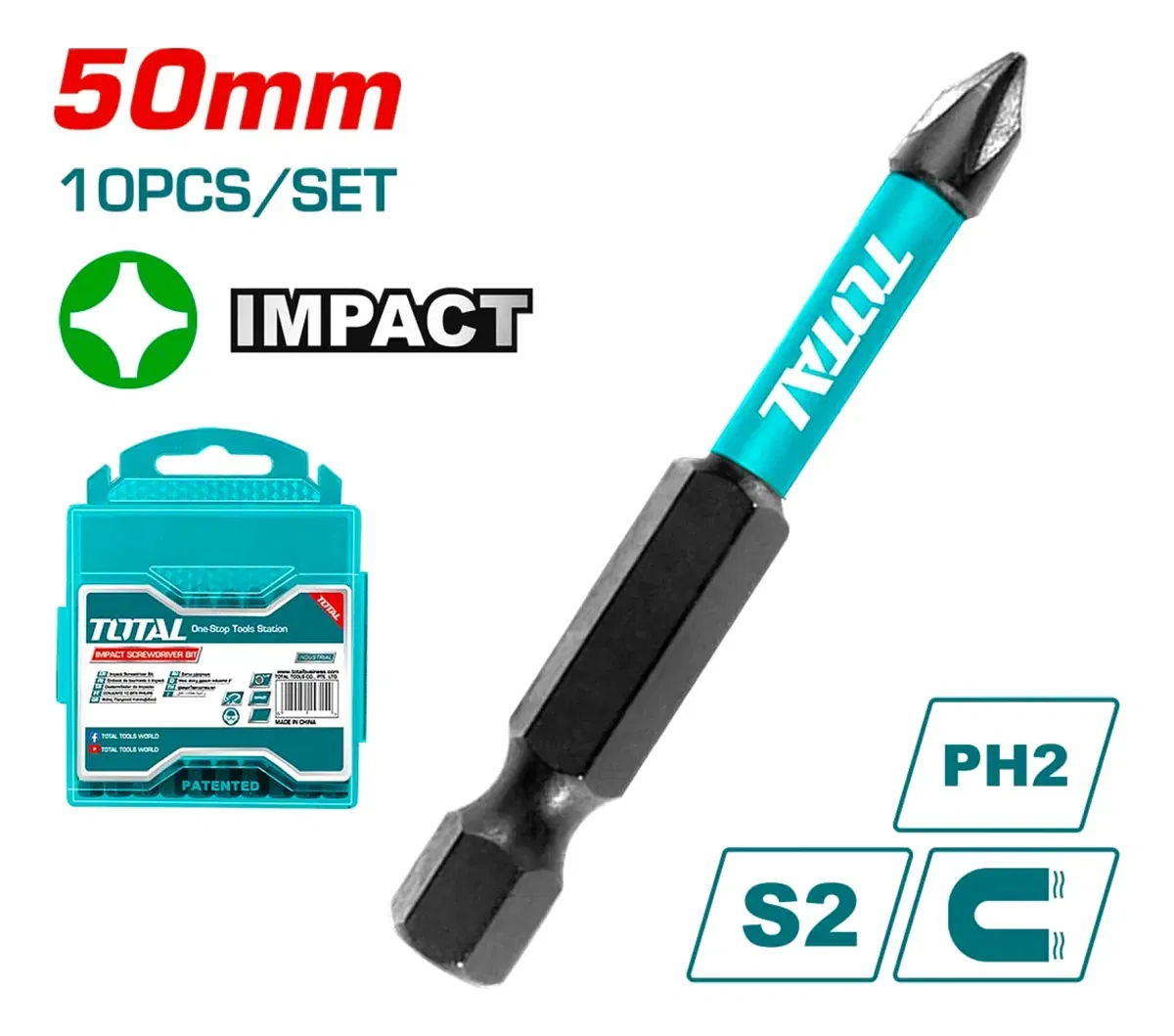 Set 10 Puntas PH2 (50mm) para Atornillador de Impacto INDUSTRIAL TOTAL TACIM16PH223