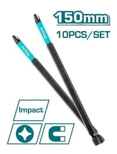 Set 10 Puntas PH2 (150mm) para Atornillador de Impacto INDUSTRIAL TOTAL TACIM16PH263