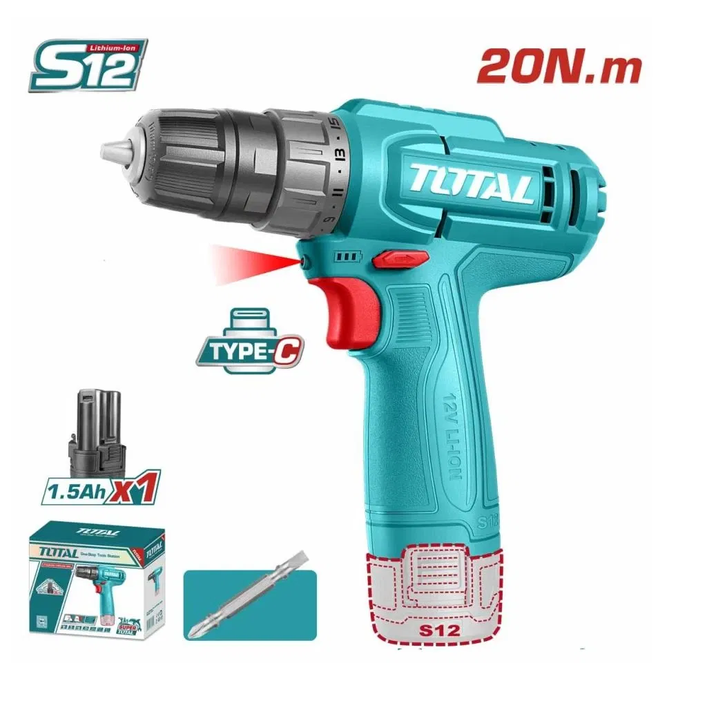Taladro 12V 750rpm 20Nm TOTAL TDLI12456 (BATERIA CARGA TIPO C)