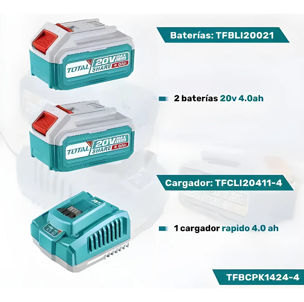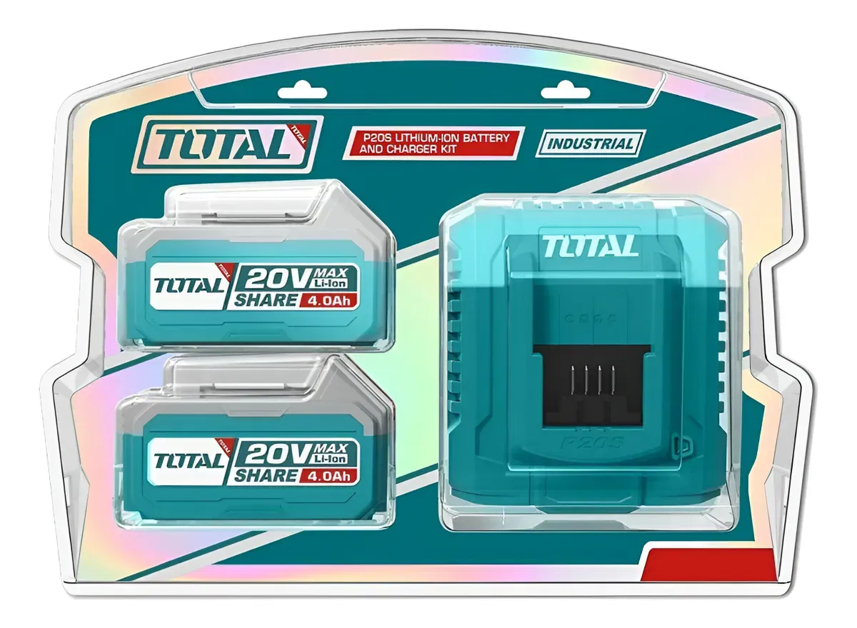 2 Baterias y Cargador 20V 4.0 Ah INDUSTRIAL TOTAL TFBCPK2013-4