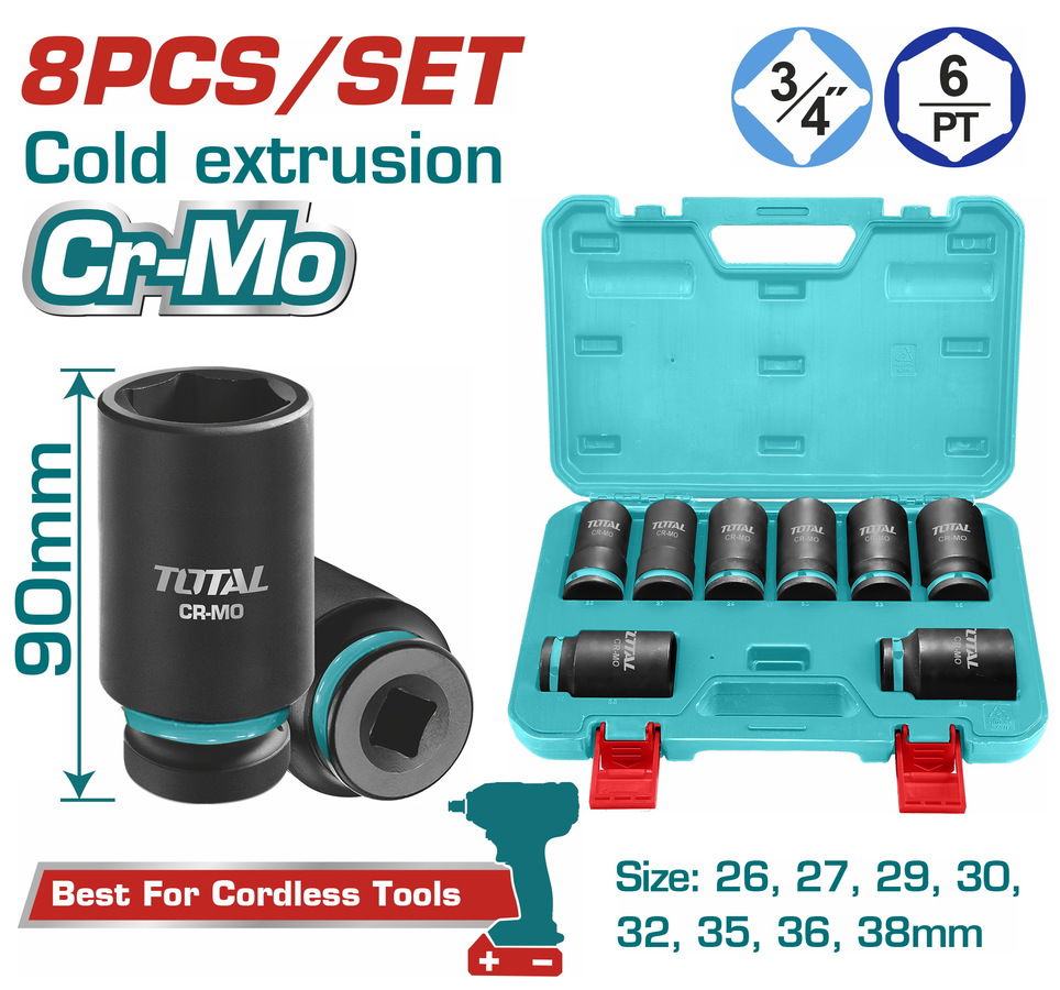 Set de 8 Accesorios para Llave de Impacto 3/4" INDUSTRIAL TOTAL THKISD34082L