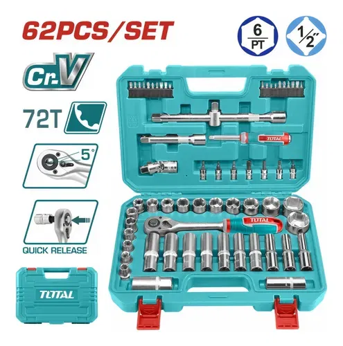 Set Llave y Bocallaves 62 Pcs 1/2" INDUSTRIAL TOTAL THT121602