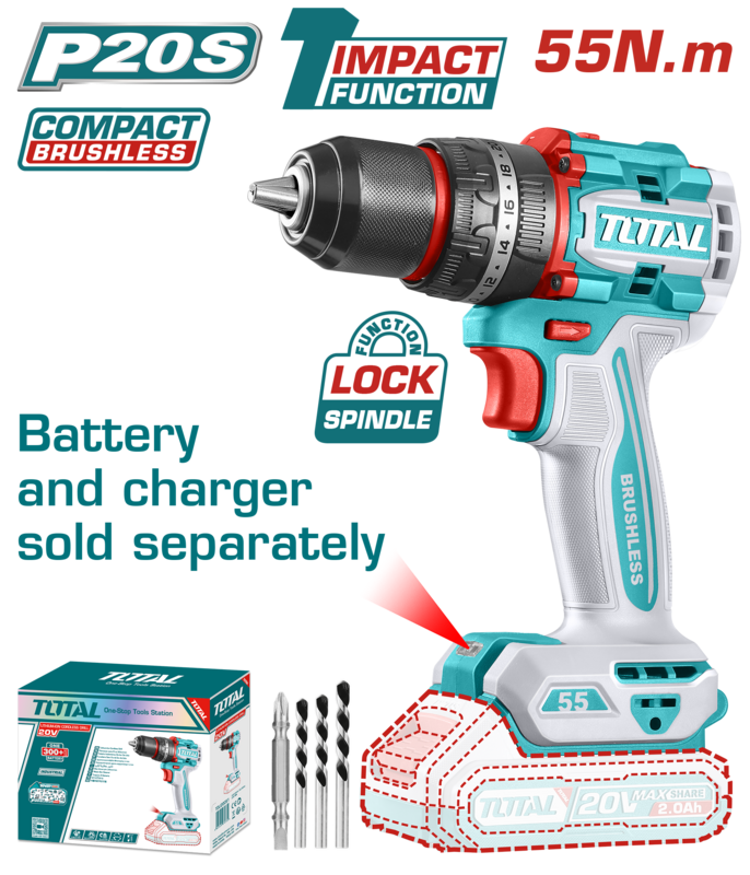 Taladro Percutor 20V BL 2000rpm 55Nm INDUSTRIAL TOTAL TIDLI205581