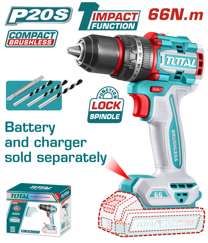 Taladro Percutor 20V BL 2000rpm 66Nm INDUSTRIAL TOTAL TIDLI206681
