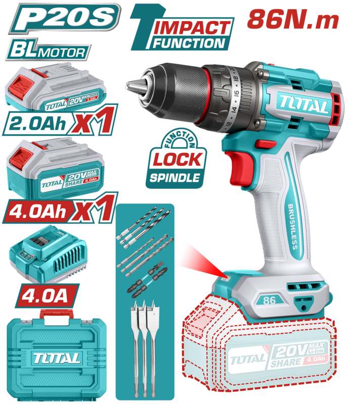 Taladro Percutor 20V BL 2000rpm 86Nm INDUSTRIAL TOTAL