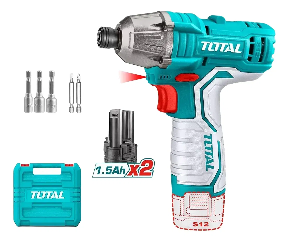 Atornillador de Impacto 12V 1/4 100Nm TOTAL TIRLI12015 (MALETIN Y 2 BATERIAS CARGA TIPO C)