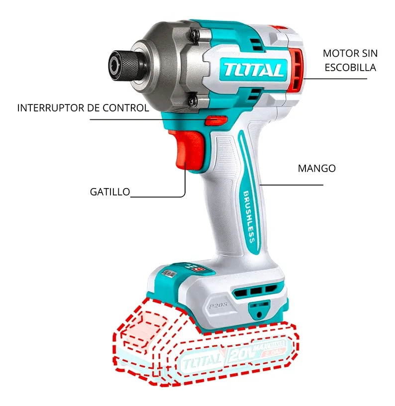 Atornillador de Impacto 20V BL 1/4 285Nm INDUSTRIAL TOTAL