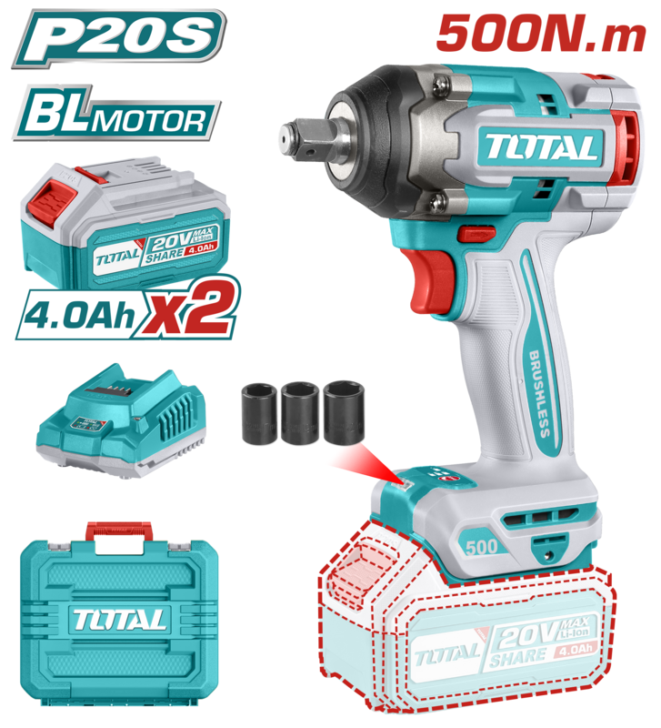 Llave de Impacto 20V BL 500Nm INDUSTRIAL TOTAL