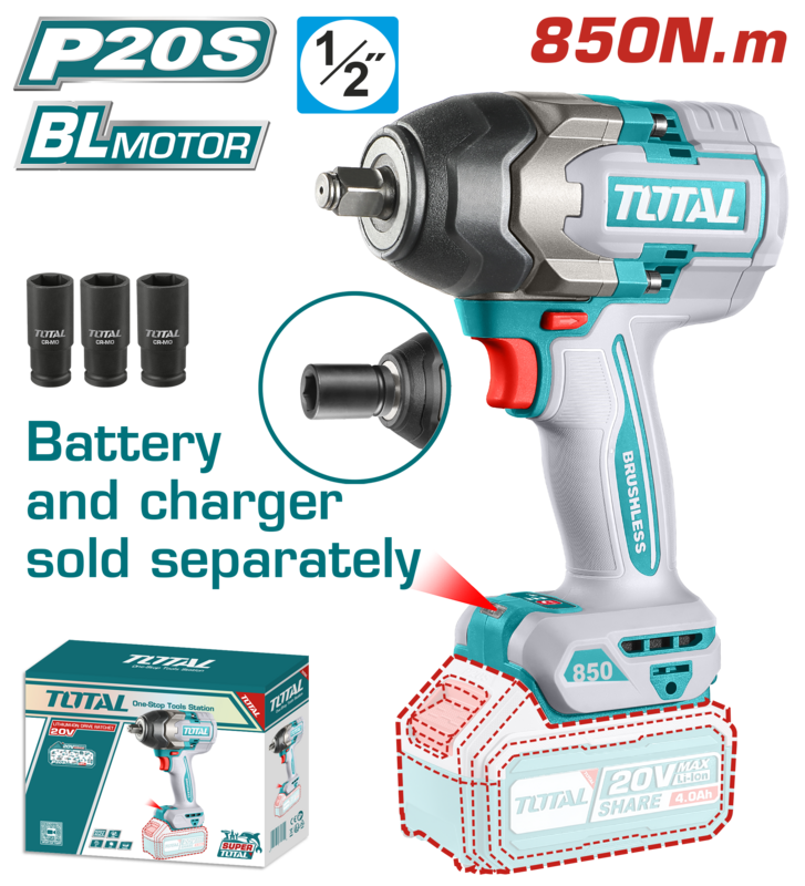 Llave de Impacto 20V BL 850Nm INDUSTRIAL TOTAL TIWLI20851