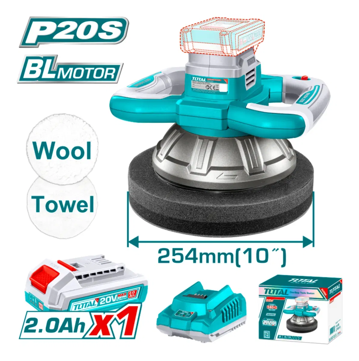 Pulidora 20V BL 254mm INDUSTRIAL TOTAL TOPLI2025481-4 (CARGADOR Y BATERIA)