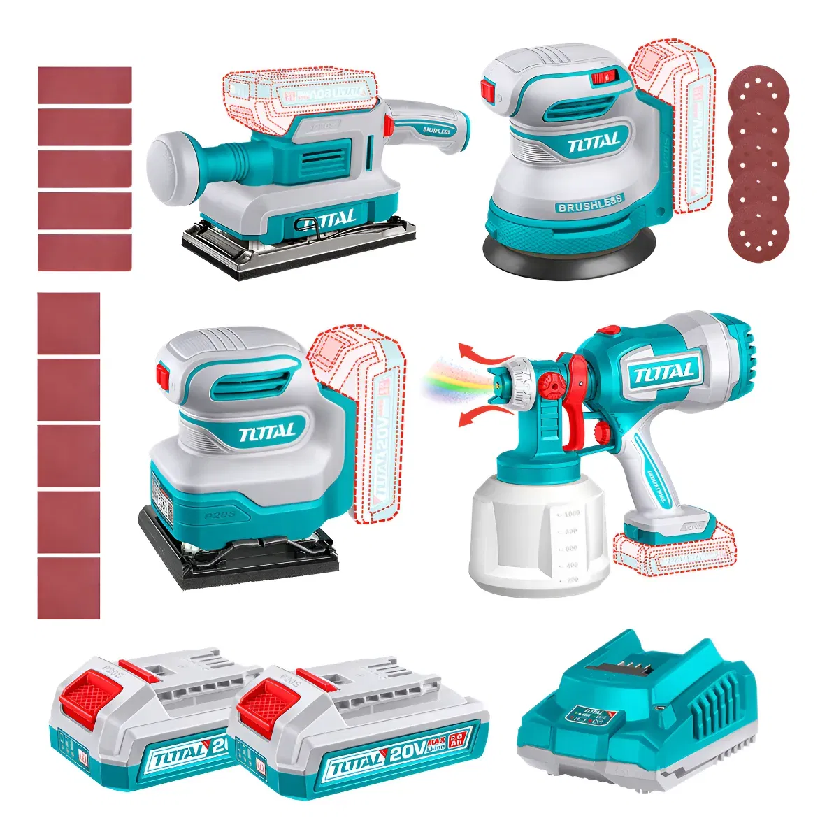 Kit 3 Lijadoras + Equipo para Pintar INDUSTRIAL TOTAL TOSLI250383-4