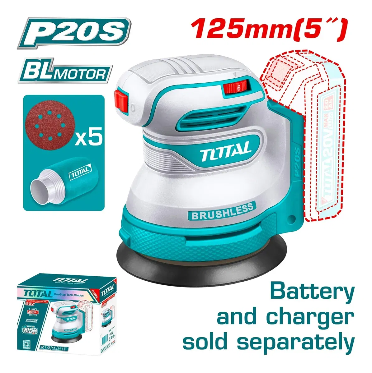 Lijadora Roto Orbital 20V INDUSTRIAL TOTAL TROSLI2002