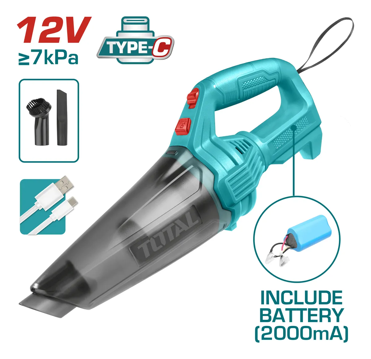 Aspiradora de Mano 12V 7 Pa TOTAL TVLI2026